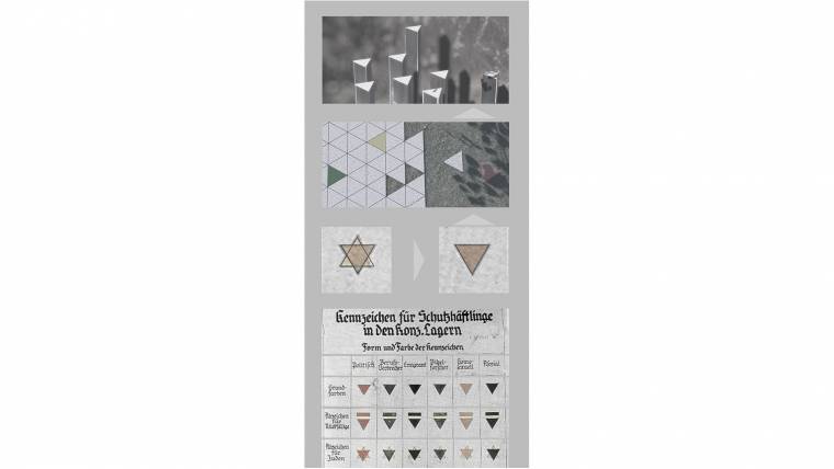 Gedenkort, der an die Entrechtung und Vertreibung von Mainzer Bürgern durch Mainzer Bürger während des Zweiten Weltkrieges erinnern soll. Pflaster in Dreicksform, abgeleitet von der Form des „Davidsterns“, dem „rosa Winkel“ und dem „rotbraunen Winkel“. Eine Stahlwand für das ungewisse Schicksal der zur Deportation versammelten Menschen.