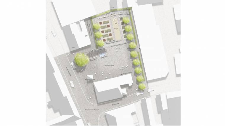 Durch eine Neugliederung des Platzes wird der Charakter des historischen Siedlungskernes gestärkt und gibt ihm ein Stück Identität zurück. So resultiert der wesentliche Entwurfsgedanke aus einer Freistellung des Rathauses im Stadtboden und räumlichen Fassung des Platzes in der umgebenden, heterogenen Bebauung, sodass ein maßstäblicher Platzraum entsteht, der die Bedeutung des ehemaligen Rathauses als Ortsmittelpunkt Rechnung trägt.